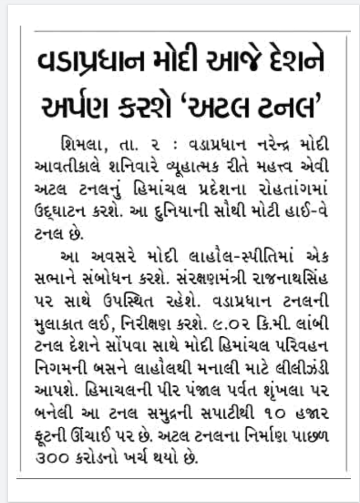 Today, on the anniversary of ex- principal Minister Atal Bihari Vajpayee, the entire country is paying service to this immense leader. Atalji is not amongst us from today. But his gift to the country, his magnificent lecture shape and his memories will permanently house newly picked in the sensitivity of Hindustan. first-rate Minister Narendra Modi will launch the Atal Tunnel foresee nowadays on the chance of the earlier first-rate Minister's birthday.